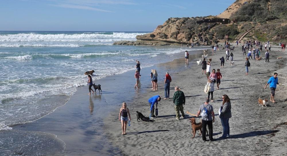 Off-leash dogs are allowed here only in the off season, so it’s a great place to visit if you’re spending winter in San Diego. During the summer season, from June 15th to Labor Day, dogs can roam off-leash only from dawn until 8 AM. Check out the official dog beach access website for all Del Mar beach details.