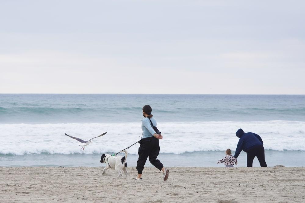 The scenic Ocean Front Boardwalk connects Pacific Beach to Mission Beach, offering an enjoyable route for walking your dog. In winter, the beach is less crowded, providing a more tranquil experience for you and your furry friend.